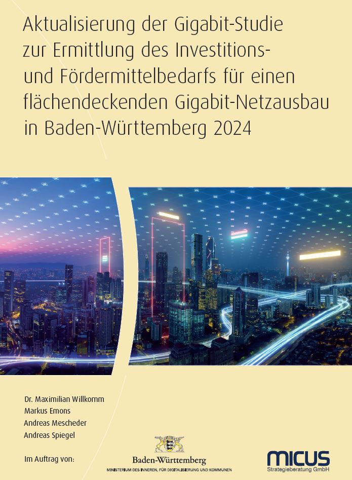 Aktualisierung der Gigabit-Studie zur Ermittlung des Investitions- und Fördermittelbedarfs für einen flächendeckenden Gigabit-Netzausbau in Baden-Württemberg.